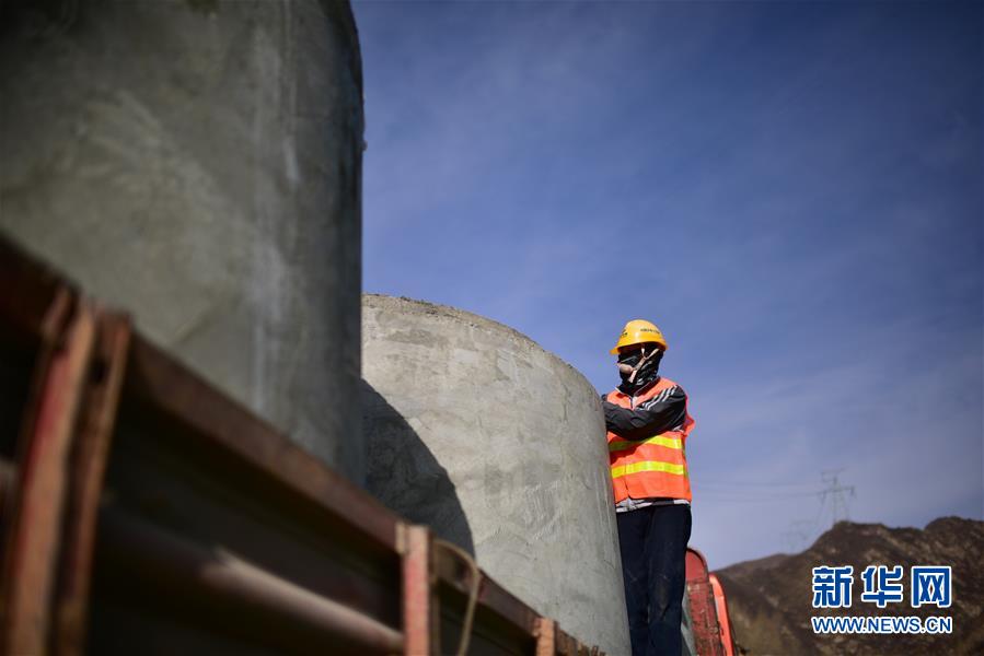 3月11日,施工人员在“引大济湟”工程西干渠项目现场施工。 新华社记者 吴刚 摄