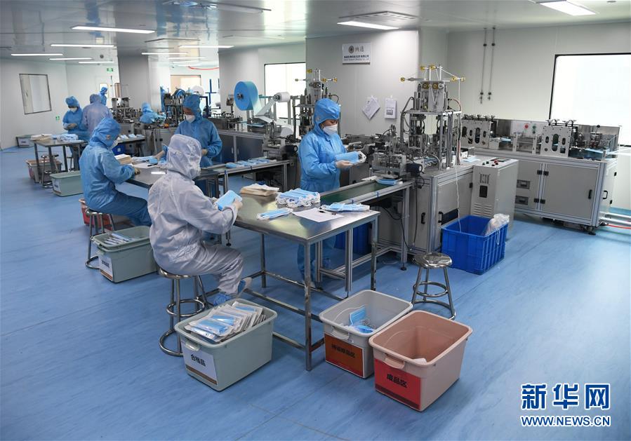 3月11日,工作人员在医用外科口罩生产车间工作。 纳通生物科技(北京)有限公司是一家主要从事骨科植入物研发、生产和销售的企业。公司经相关部门评估和快速审批,新增口罩生产线,在严格落实疫情防控措施的前提下,全力生产口罩,助力疫情防控。 新华社记者 任超 摄