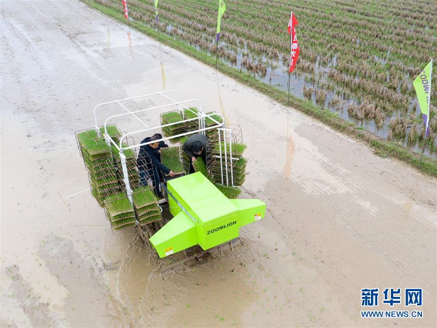 这是3月3日拍摄的湖南省益阳市资阳区东新村水稻有序抛秧机示范现场(受访者供图)。 新华社发