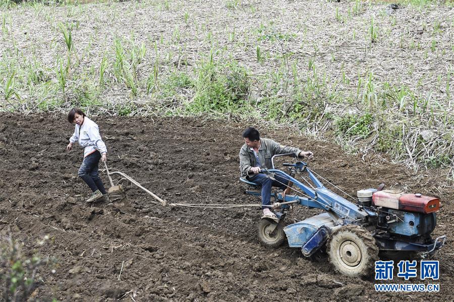 3月11日,广西崇左市龙州县逐卜乡村民在田间犁地。 春回大地,广西崇左市的木棉花竞相绽放。当地群众抓住农时开展春耕备耕,加快春季农业生产。 新华社记者 王念 摄