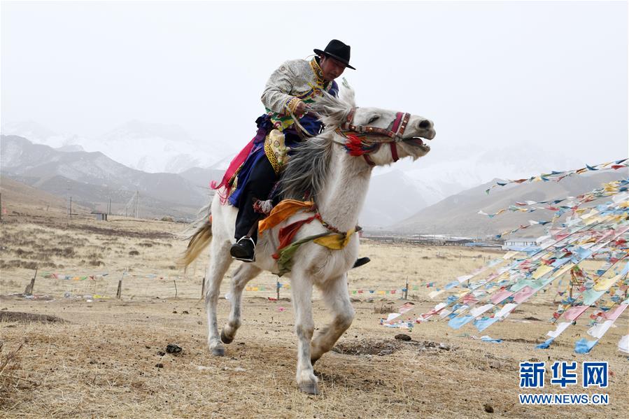 3月12日,在天祝藏族自治县抓喜秀龙镇南泥沟村,宋天柱骑马去寻找羊群。 新华社记者 范培珅 摄