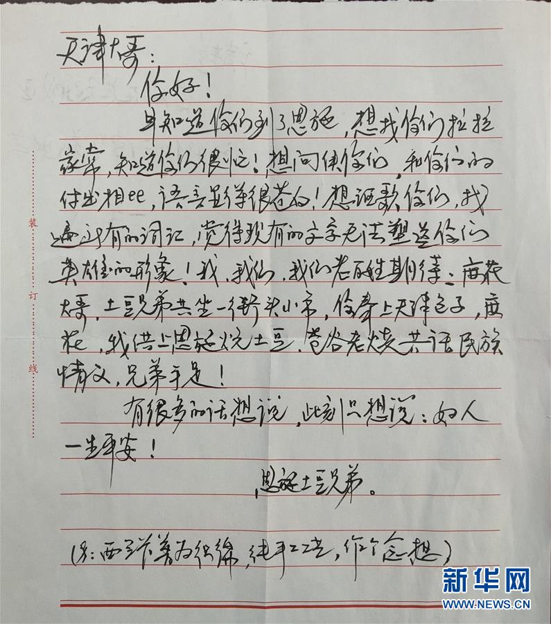 这是谭祖悦以“恩施土豆兄弟”的名义,为支援恩施的天津医疗队写的一封信(3月3日摄)。 新华社发
