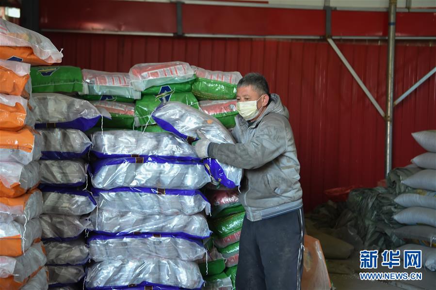 在托克托县旺苗农业有限责任公司仓库,工人在搬运农资(3月12日摄)。 春耕备耕时节,在内蒙古托克托县的农资批发点,工人们将玉米种子等农资搬运装车,运送至乡村农资销售点,供农户采购春耕物资。托克托县大面积春播将于四月下旬开始,播种作物以玉米为主。 新华社发(李志鹏 摄)