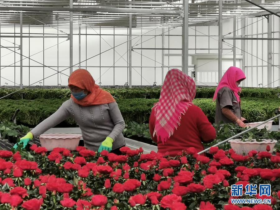 3月12日,在兰州新区花卉产业基地智能温室大棚内部,工人在劳作。 位于甘肃兰州新区的花卉产业基地将于3月15日正式投运,基地内的迷你玫瑰、非洲菊、彩色马蹄莲、蝴蝶兰等花卉已经进入盛花期。 该花卉产业基地分为花卉培育中心和花卉贸易中心,预计年产盆栽花卉120万盆,将成为西北地区重要的花卉生产基地和当地现代智慧农业、旅游观光农业的一张名片。 新华社记者 张新新 摄