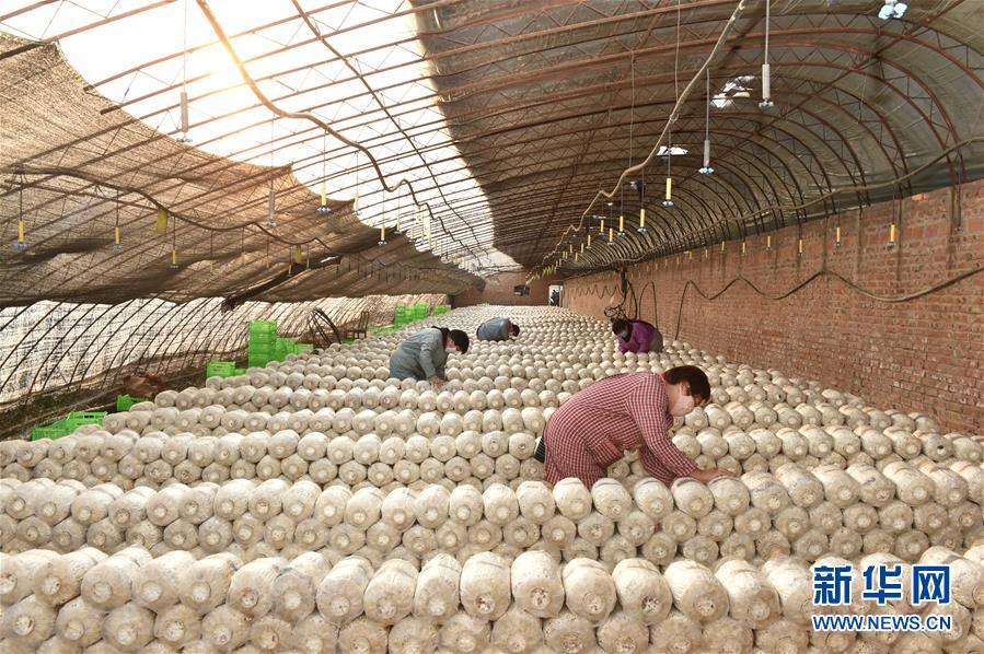 在蓟州区出头岭镇,工作人员在管理食用菌(3月9日摄)。 新华社发(王金一 摄)