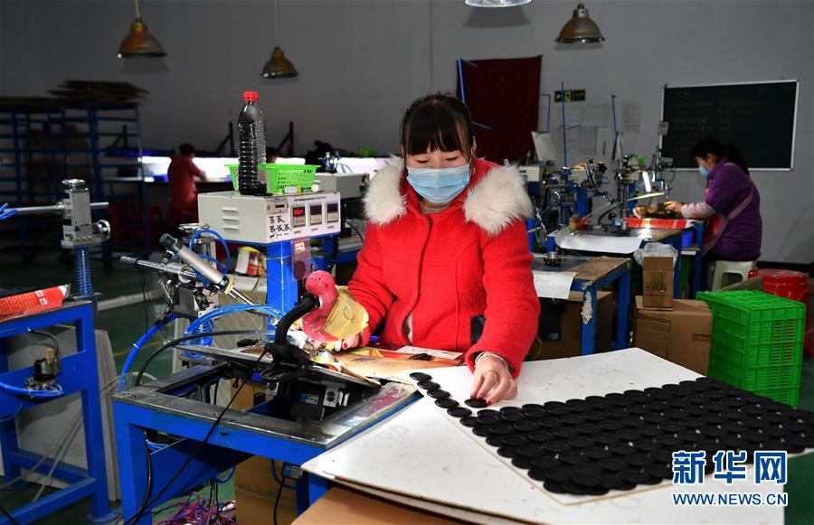 在铜川市耀州区小丘镇中原村的陕西新声沃电子科技有限公司内,工人在加工扬声器配件(3月12日摄)。新华社记者 刘潇 摄