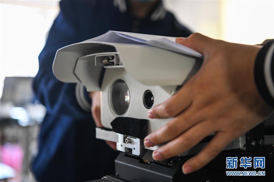 3月13日,哈尔滨新光光电科技股份有限公司技术人员在进行新型测温仪的调试作业。新华社记者 王松 摄