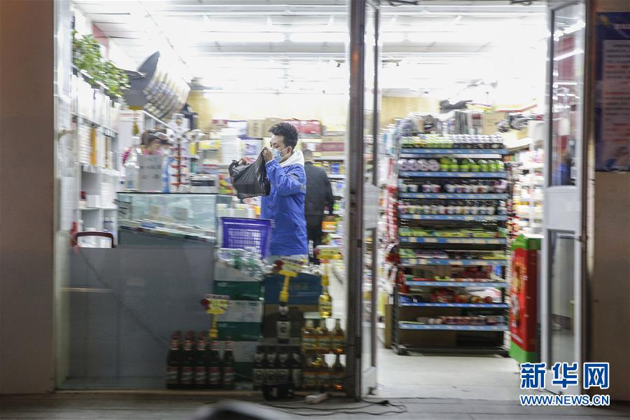 3月12日,李杰天黑之后返回途中来到一家便利店取件。 新华社记者 张玉薇 摄