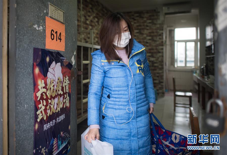3月12日,黎婧收拾完行李,走出这间待了14天的房间。 3月12日,插画师黎婧和84位病友离开自己居住的武汉软件工程职业学院康复驿站,回到自己家中。他们都是治愈出院的新冠病毒肺炎患者,已经在武汉软件工程职业学院康复驿站进行了14天医学观察,达到医学标准,成功解除隔离。他们由专车运送至所属社区附近的集散点后,在社区工作人员的陪同下回家。 新华社记者 肖艺九 摄