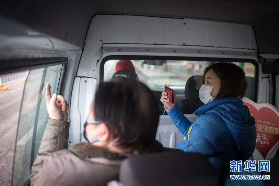 3月12日,黎婧(右)被小区工作人员接上车后,透过车窗拍摄熟悉的街道。 3月12日,插画师黎婧和84位病友离开自己居住的武汉软件工程职业学院康复驿站,回到自己家中。他们都是治愈出院的新冠病毒肺炎患者,已经在武汉软件工程职业学院康复驿站进行了14天医学观察,达到医学标准,成功解除隔离。他们由专车运送至所属社区附近的集散点后,在社区工作人员的陪同下回家。 新华社记者 肖艺九 摄