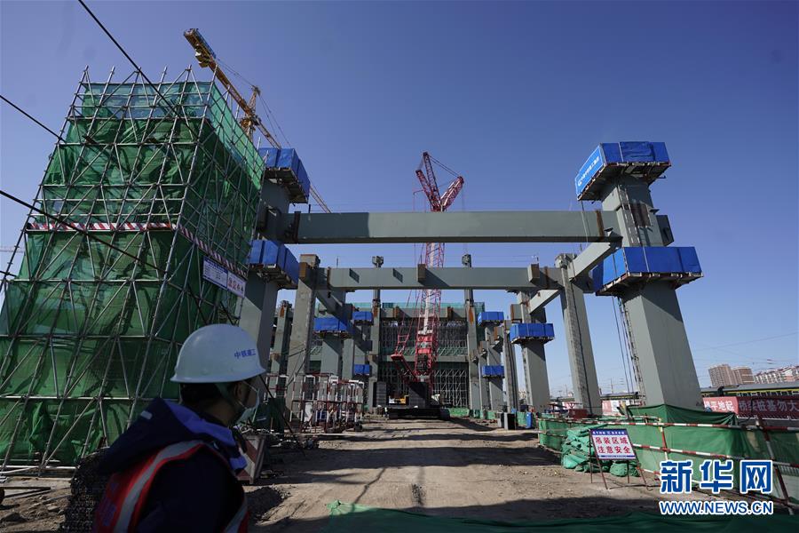 3月13日拍摄的北京丰台站改建工程施工现场。 北京丰台站改建工程自复工以来安全有序推进,为完成全年工程建设目标任务奠定基础。 新华社记者 邢广利 摄