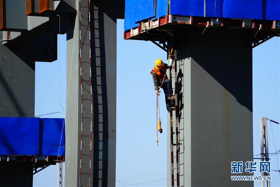 3月13日,工人在北京丰台站改建工程工地施工。 北京丰台站改建工程自复工以来安全有序推进,为完成全年工程建设目标任务奠定基础。 新华社记者 邢广利 摄