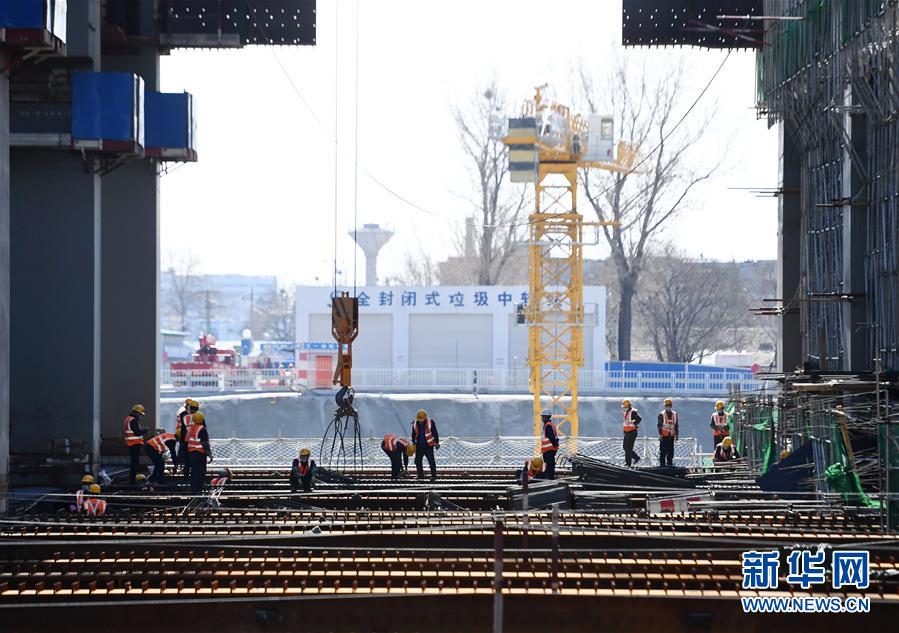 3月13日,工人在北京丰台站改建工程工地施工。 北京丰台站改建工程自复工以来安全有序推进,为完成全年工程建设目标任务奠定基础。 新华社记者 张晨霖 摄