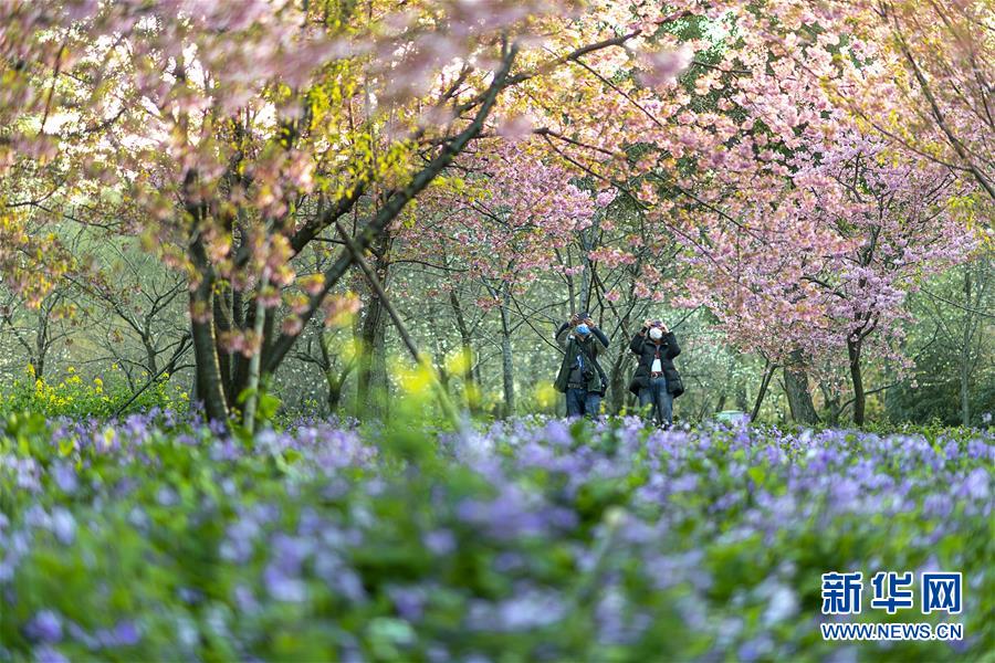 3月14日,游客在武汉东湖磨山樱园游玩。 近日气温渐升,武汉东湖磨山樱园里的樱花渐次盛开,带来春天的气息。 新华社记者 熊琦 摄