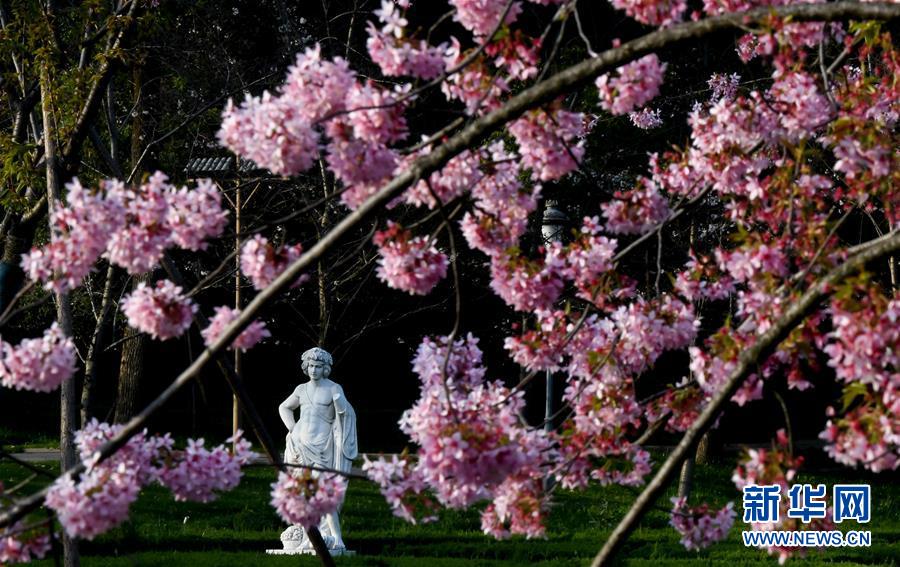 这是3月14日拍摄的武汉东湖磨山樱园景色。 近日气温渐升,武汉东湖磨山樱园里的樱花渐次盛开,带来春天的气息。 新华社记者 程敏 摄