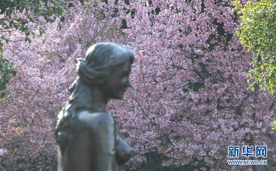 这是3月14日拍摄的武汉东湖磨山樱园景色。 近日气温渐升,武汉东湖磨山樱园里的樱花渐次盛开,带来春天的气息。 新华社记者 程敏 摄