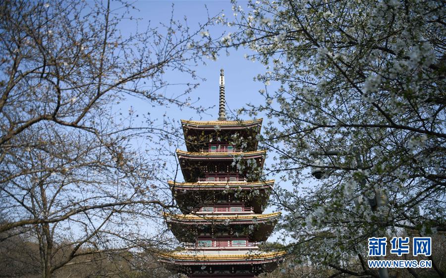 这是3月14日拍摄的武汉东湖磨山樱园景色。 近日气温渐升,武汉东湖磨山樱园里的樱花渐次盛开,带来春天的气息。 新华社记者 程敏 摄
