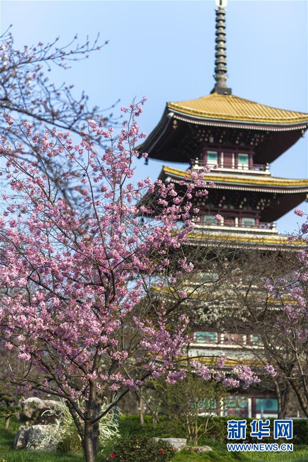 这是3月14日拍摄的武汉东湖磨山樱园景色。 近日气温渐升,武汉东湖磨山樱园里的樱花渐次盛开,带来春天的气息。 新华社记者 熊琦 摄