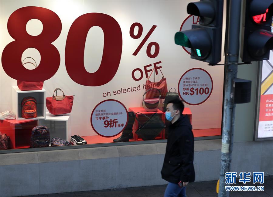 在香港中环,市民戴着口罩从商店橱窗前经过(2月22日摄)。 在疫情笼罩下,香港街头的人们纷纷戴上口罩,与他人保持着距离,尽量维持正常生活节奏。特区政府也大力推出一系列抗疫措施,与市民共度时艰。 新华社记者 李钢 摄