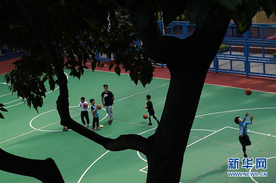 小朋友在篮球场锻炼(2月23日摄)。 在疫情笼罩下,香港街头的人们纷纷戴上口罩,与他人保持着距离,尽量维持正常生活节奏。特区政府也大力推出一系列抗疫措施,与市民共度时艰。 新华社记者 李钢 摄