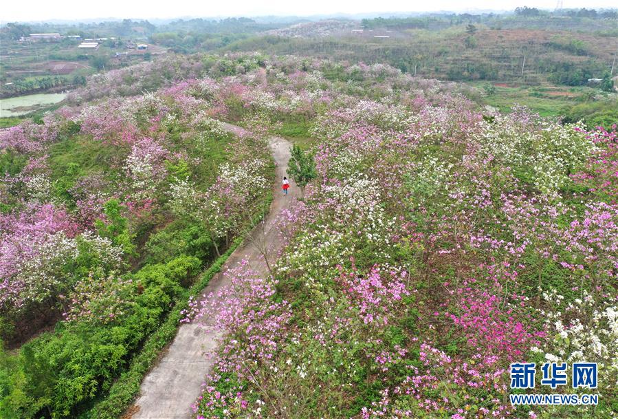 3月15日拍摄的南宁市邕宁区蒲庙镇华康村春色(无人机照片)。 随着气温回升,广西南宁市邕宁区蒲庙镇华康村鲜花盛开,春色宜人。 新华社记者 周华 摄