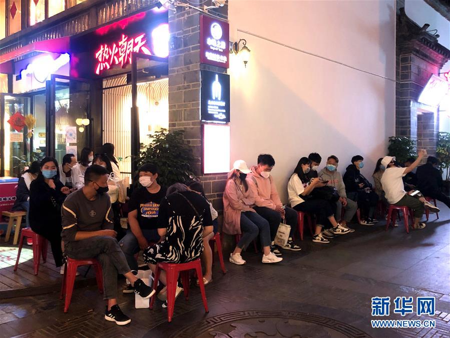 3月15日,消费者在昆明市南强步行街一家“网红”火锅店外排队。新华社记者丁怡全摄
