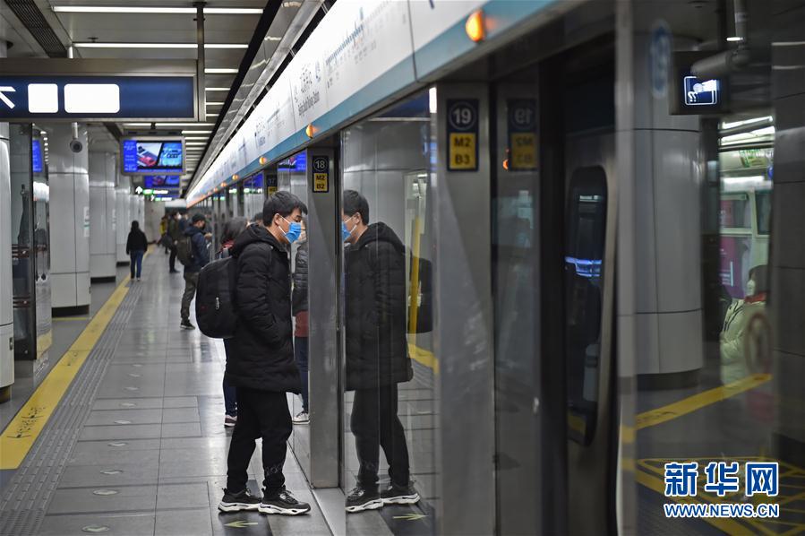 这是3月16日早拍摄的北京南站地铁站站台。 新华社发(陈钟昊摄)