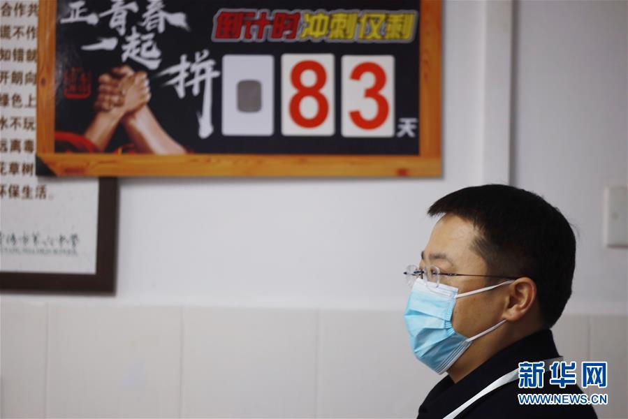 3月16日,贵阳市第六中学一名高三任课老师在高考倒计时83天的指示牌前。新华社记者欧东衢摄
