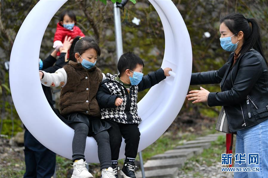 3月15日,人们在湖北省宣恩县贡水河湿地公园玩耍。 新华社发(宋文 摄)