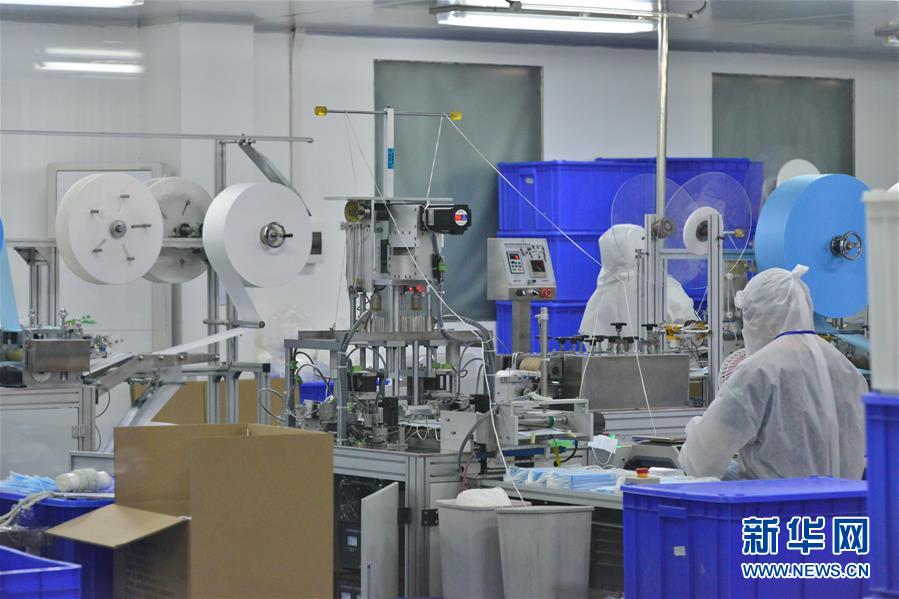 3月15日,工人在口罩生产线上忙碌。新华社发(杜利华 摄)