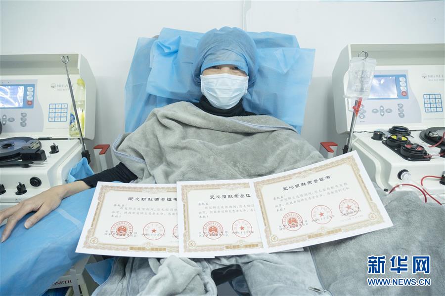 3月16日,在武汉市血液中心,新冠肺炎康复者、汉口医院护士蔡桃英在献血浆。这是她在康复后第三次献血浆,也是她第84次献血。 在抗击新冠肺炎疫情期间,一些新冠肺炎康复者在愈后自愿无偿捐献血浆,让一份份爱心凝聚成战胜疫情的强大动力。 新华社记者 才扬 摄