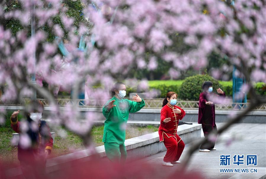 3月16日,在襄阳樊城江滩公园一入口处,工作人员在拆除一处临时围挡。 据了解,为统筹抓好疫情防控和企业复工复产、人员安全有序流动,推动经济发展等工作,从3月17日起,湖北省襄阳市部分疫情防控点将调整优化。 新华社发(谢剑飞 摄)