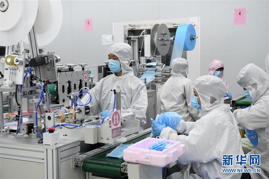 3月17日,工人在富士康口罩生产车间工作。 近日,记者走访深圳多家大型企业生产车间、粤港澳大湾区重点项目建设现场了解到,在抓好疫情防控的同时,深圳复工复产已进入“快车道”。截至目前,深圳全市规模以上工业企业、重点建设工程项目复工率均已超过97%。 新华社记者 梁旭 摄