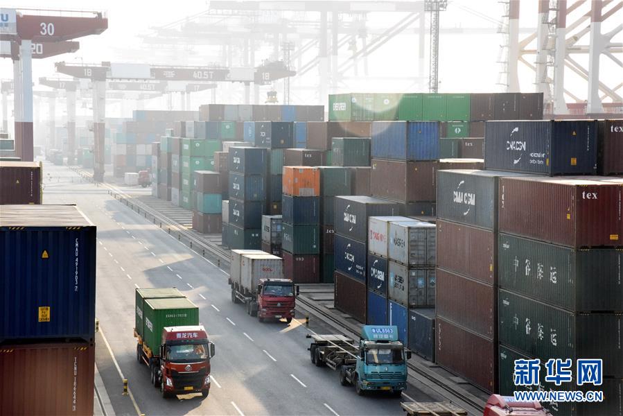 3月17日,卡车在青岛港集装箱三期码头运送集装箱。 近日,山东港口集团各港区相关企业已全面恢复生产,船舶抵离港班次、集装箱吞吐量等均逐步回升,港口生产有序推进、积极向好。 新华社记者 李紫恒 摄