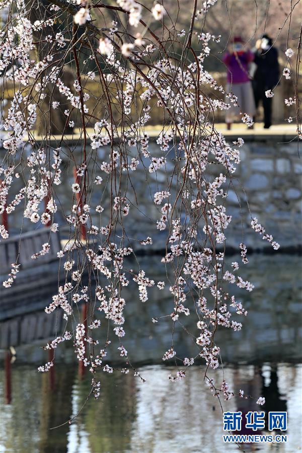 3月17日,游客在北京颐和园赏花。 气温回升,各地春暖花开,一派盎然春意。 新华社发(刘宪国 摄)