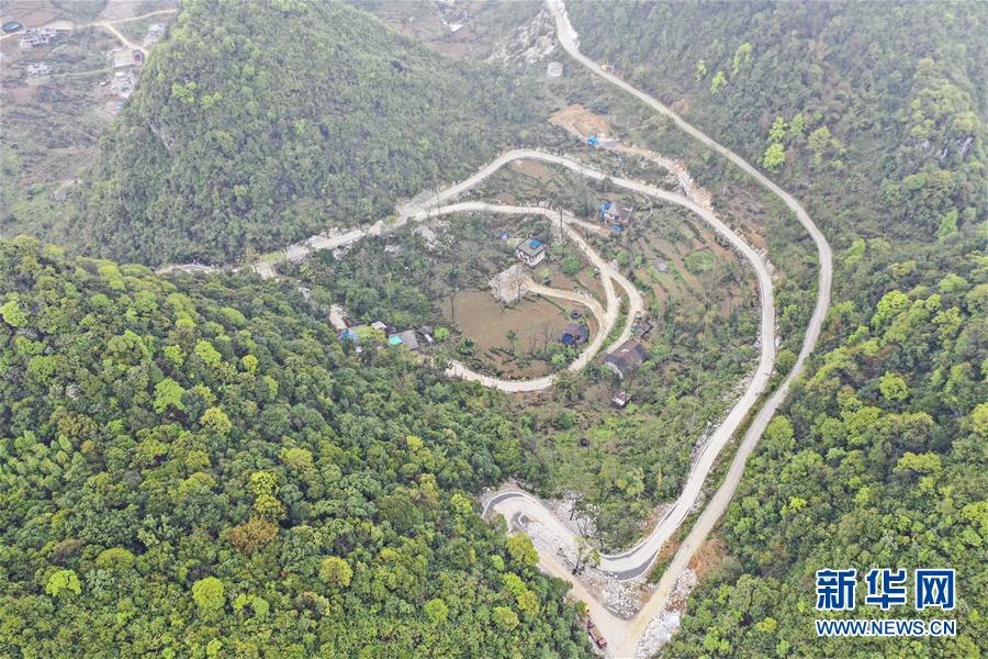 这是3月17日拍摄的广西都安瑶族自治县大兴镇梅珠村的屯级公路(无人机照片)。新华社记者 曹祎铭 摄