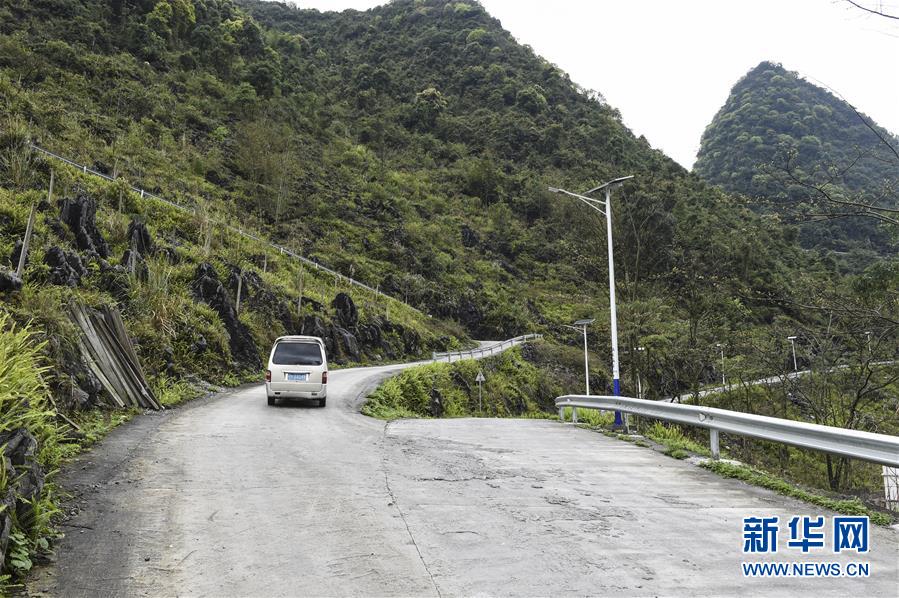 这是3月17日拍摄的广西都安瑶族自治县下坳镇一条配有太阳能路灯的屯级公路。新华社记者 王念 摄