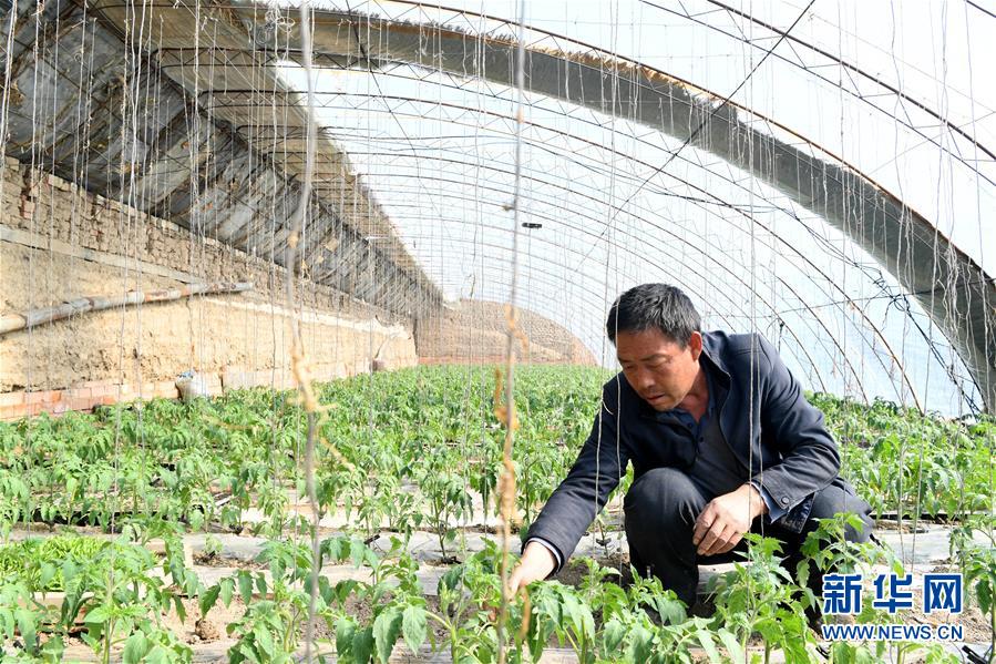 3月17日,新疆昌吉市佃坝镇土梁村菜农达其爱在大棚查看西红柿长势。 连日来,新疆昌吉市佃坝镇农户在做好疫情防控的同时,紧跟农时忙生产,保证群众“菜篮子”供应。 新华社记者 沙达提 摄