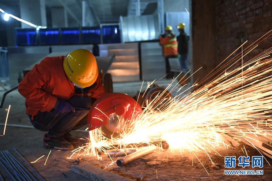 3月18日,工人在兰州轨道交通1号线省政府站施工项目现场进行切割作业。新华社记者 范培珅 摄