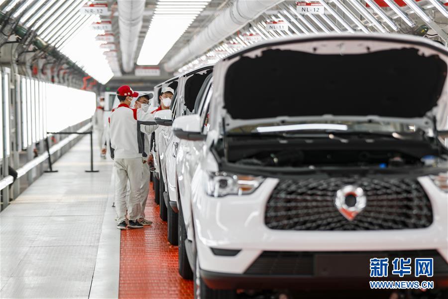 3月18日,在长城汽车股份有限公司重庆分公司,总装车间检测线的员工正在对车辆进行下线前的检测。新华社发(黄伟 摄)