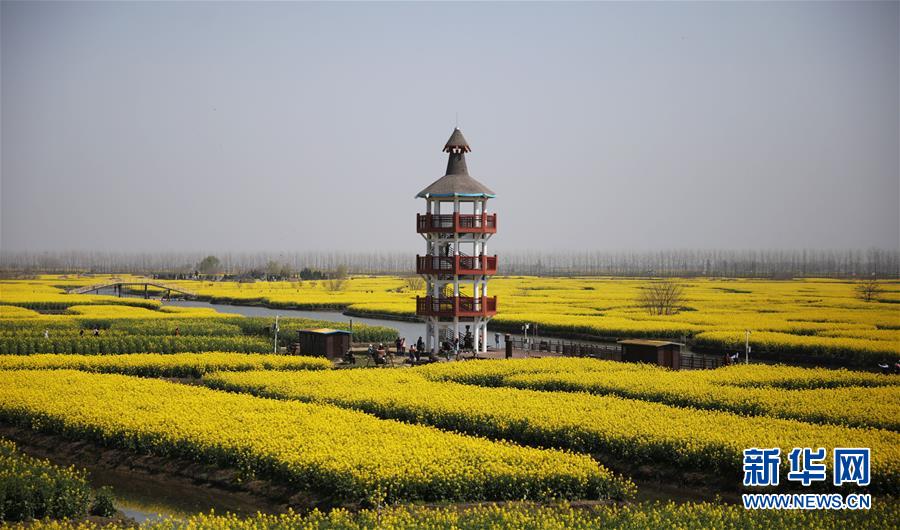 3月18日拍摄的江苏省兴化市千垛景区。 近日,正值江苏省兴化市千垛景区万亩油菜花盛开期,金灿灿的油菜花在水道围成的垛田上形成一片片金黄色的“花海”,形成了“河有万湾多碧水,田无一垛不黄花”的壮观景色。 新华社记者 李雨泽摄