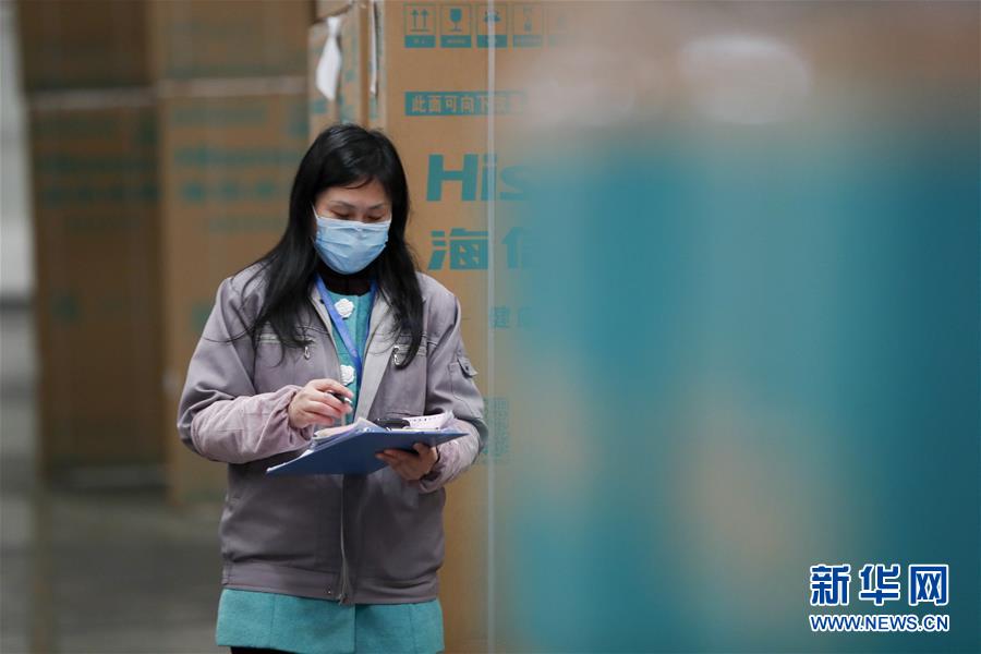 3月16日,在重庆国际物流枢纽园区的中集现代物流中心A区海信RDC仓库,工作人员登记即将出库的货品。新华社发 (黄伟 摄)