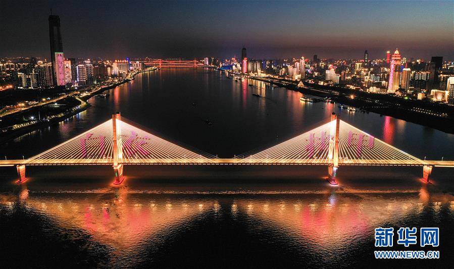 武汉夜景灯光向“最美逆行者”致敬