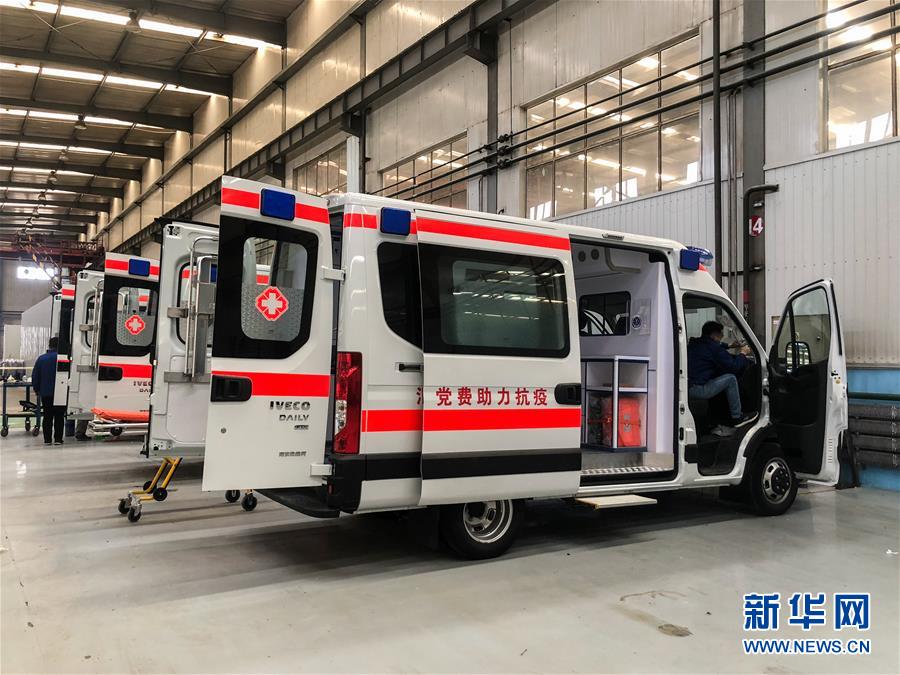 新在包头市一机集团专用汽车公司,工人在组装负压式救护车(3月16日摄)。 新冠肺炎疫情发生后,内蒙古自治区的防疫物资供应一度紧张,起初仅有一家生产医疗防护口罩的企业。当地一批具备转产能力的重工企业,发挥产业基础优势,主动加入防疫物资生产大军,紧急跨界转产,有力扩充了医疗物资保障能力。 新华社记者安路蒙摄