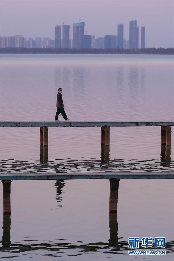 3月18日,一名男子在武汉东湖的栈道上漫步,欣赏美好景致。 3月18日,湖北新增确诊病例0例(武汉0例),新增治愈出院病例795例(武汉733例)。 新华社记者 沈伯韩 摄