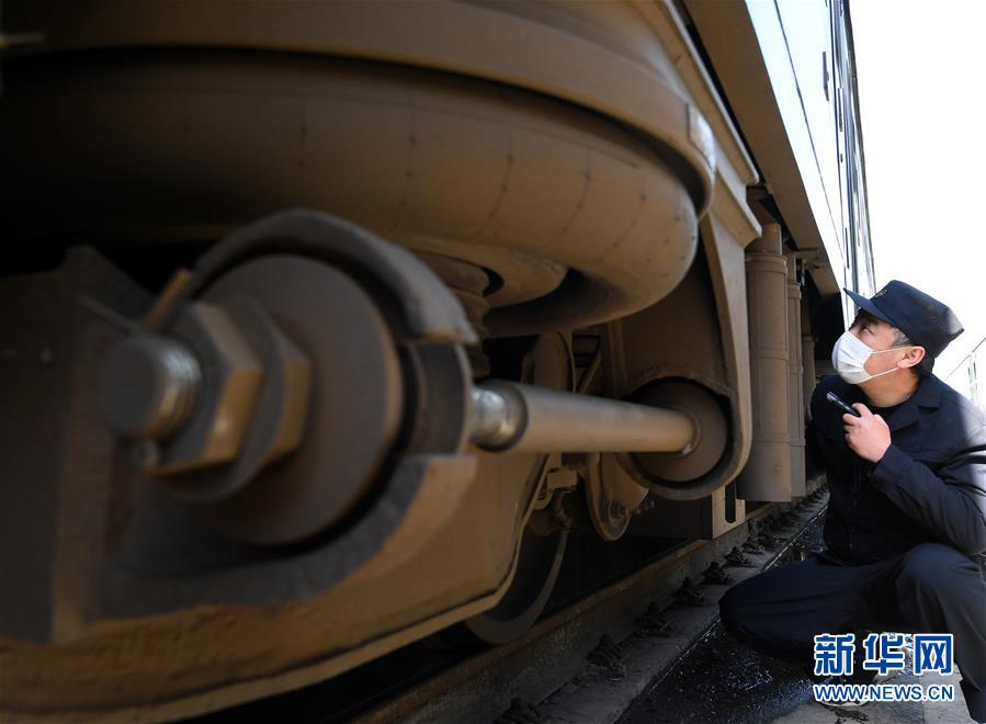 3月19日,郑州车辆段库检车间值班主任张伯季在对客车下部设施进行检查。新华社记者 李安 摄