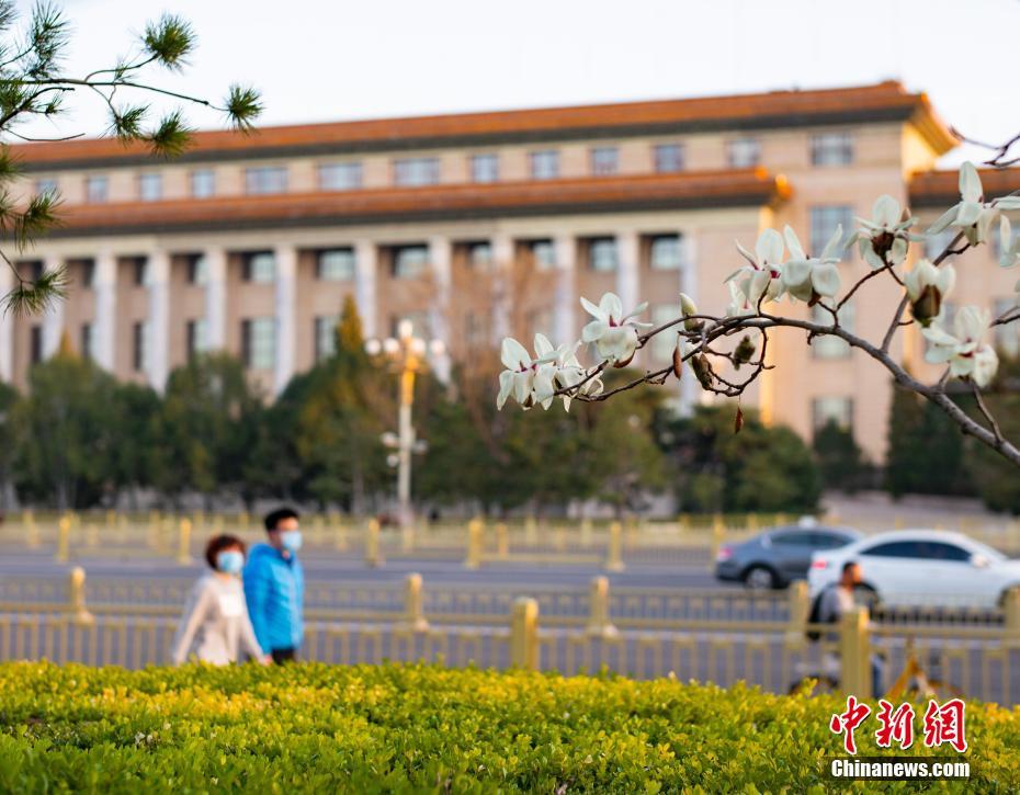 3月20日,北京市长安街边的玉兰花绽放枝头。当天是中国二十四节气中的“春分”。中新社记者 侯宇 摄