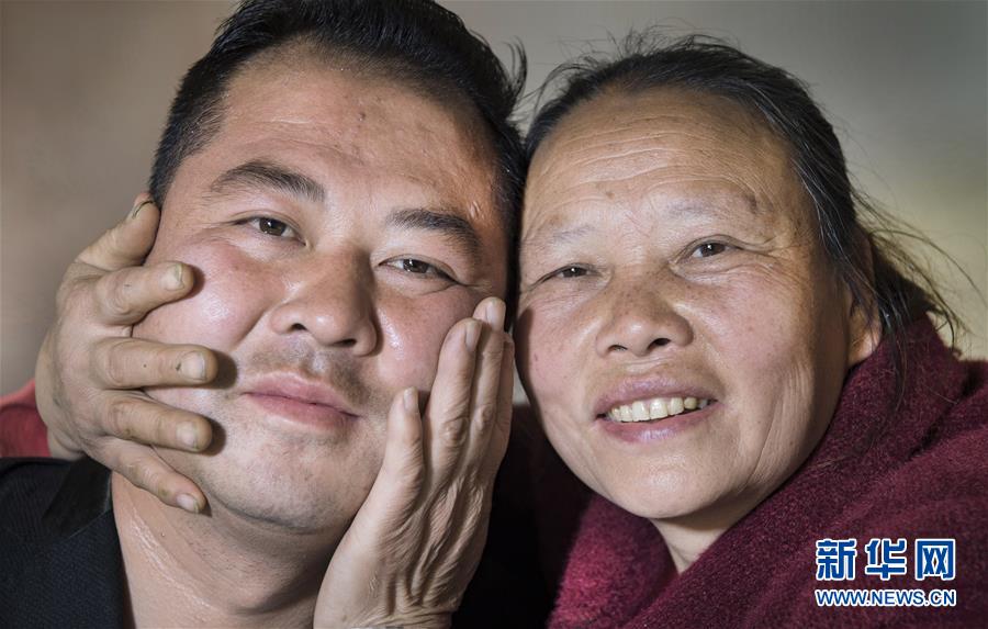 曹刚勇(右)与儿子陈洪珊在一起(3月19日摄)。