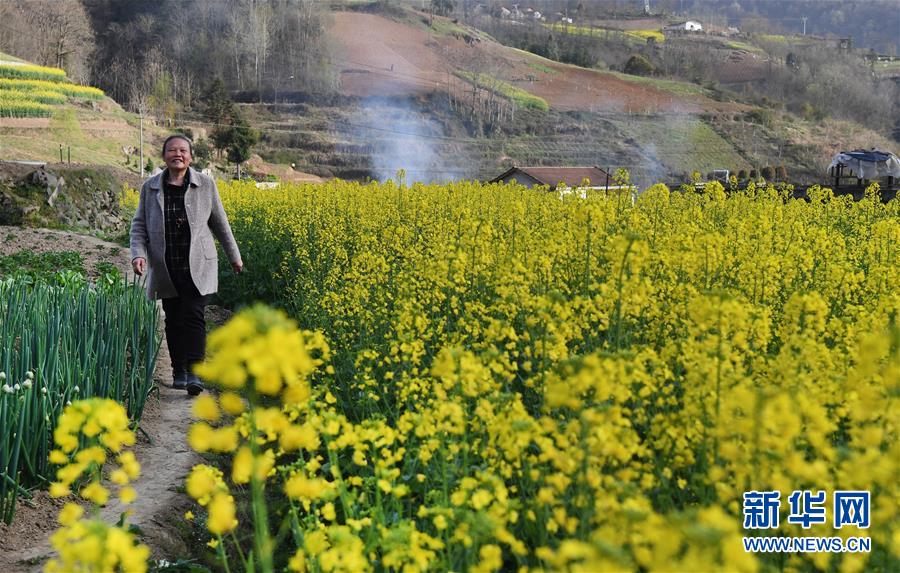 曹刚勇走在乡村小道上,去看望本村生病的一名残疾人(3月20日摄)。 新华社记者陶明摄
