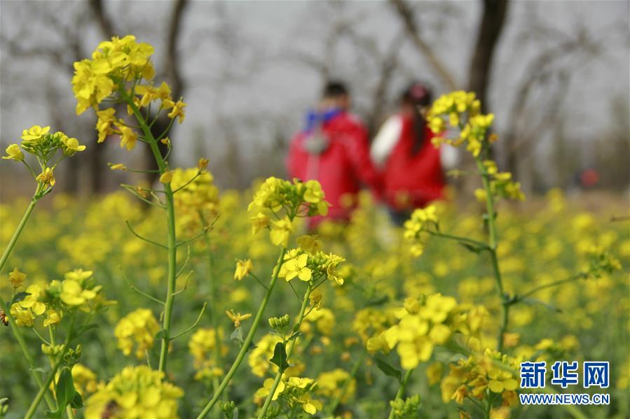 3月21日,两个小朋友在河南省安阳市乡间的油菜花田中游玩。 春暖花开时节,人们走出家门,来到大自然中,感受春的气息。 新华社发